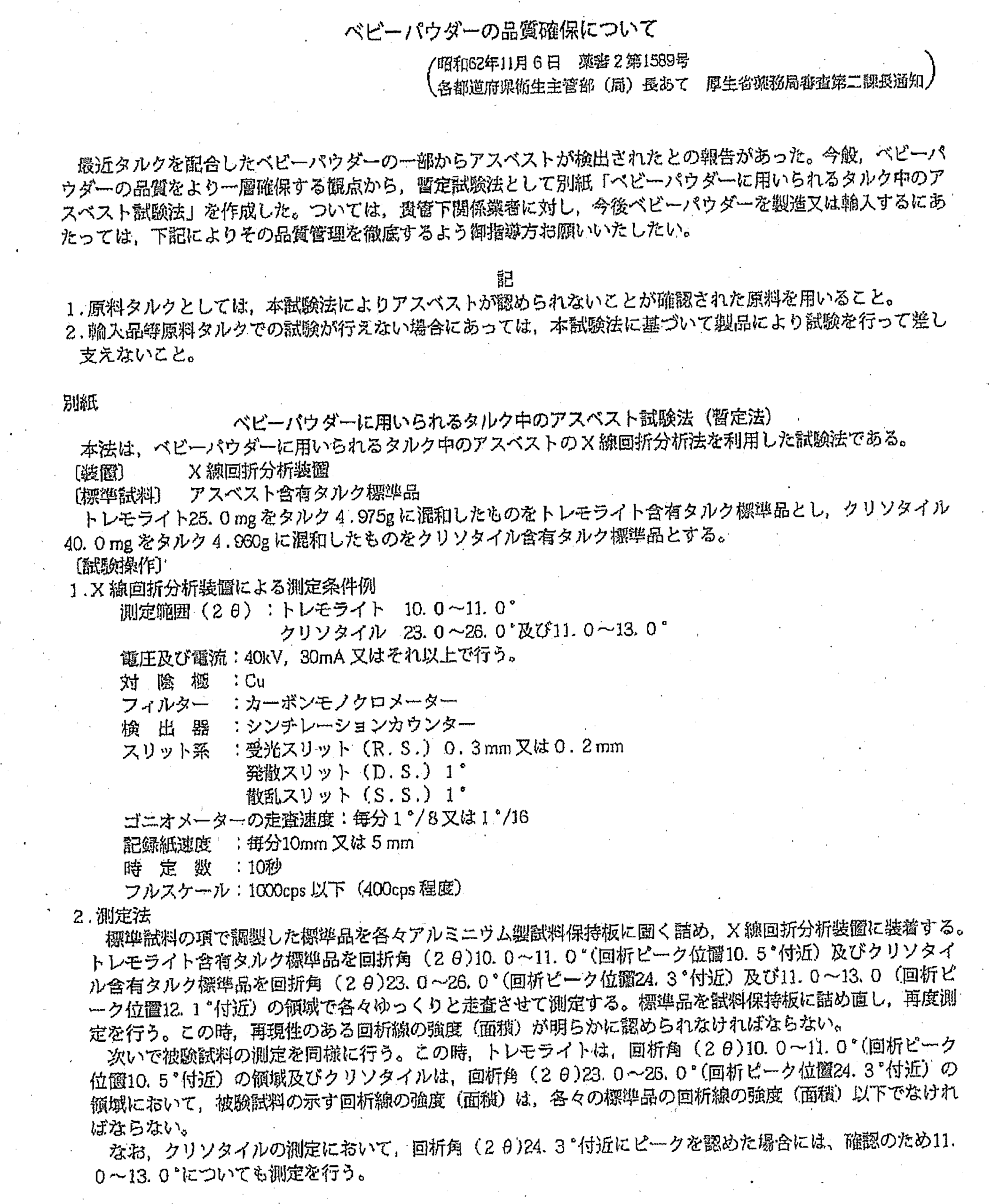 ②厚生省(当時)からベビーパウダー等の品質確保に関する通知(昭和62年)が発出される以前の期間であり、事業場で取り扱っていた商品に石綿(タルク中の不純物)が含有されていた可能性や、被災者が業務でそれを吸入した可能性が否定できないと判断された。